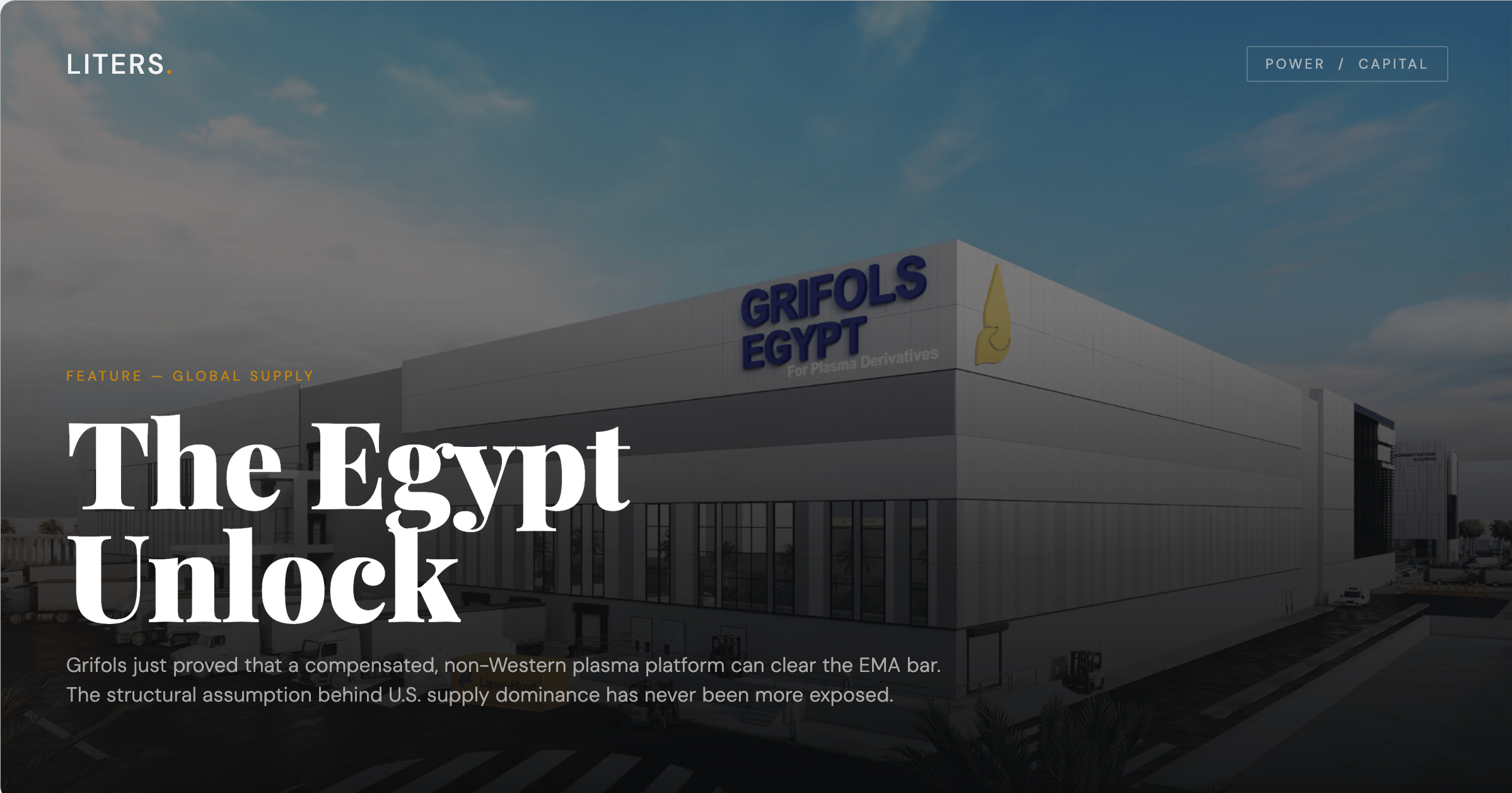 Disclaimer: Liters is an independent research and analysis publication covering the plasma industry, published by Liters Inc. Liters Inc. also operates Bell Chime Capital, an investment platform focused on plasma-backed assets, so topics covered may occasionally overlap with areas of investment interest. Liters is not promotional and does not solicit capital or provide investment advice.